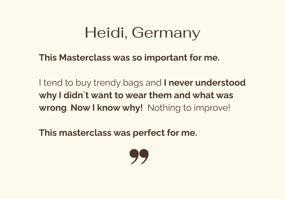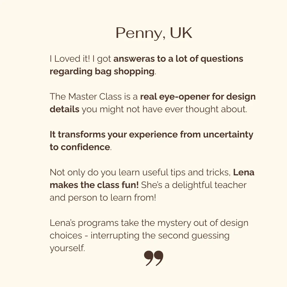 This masterclass teaches you the exact logic I use to judge bags instantly - so you stop guessing, stop wasting money, and your outfits finally look intentional